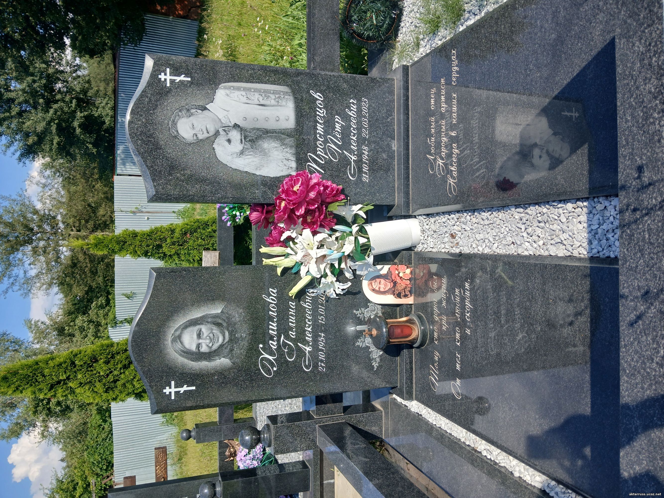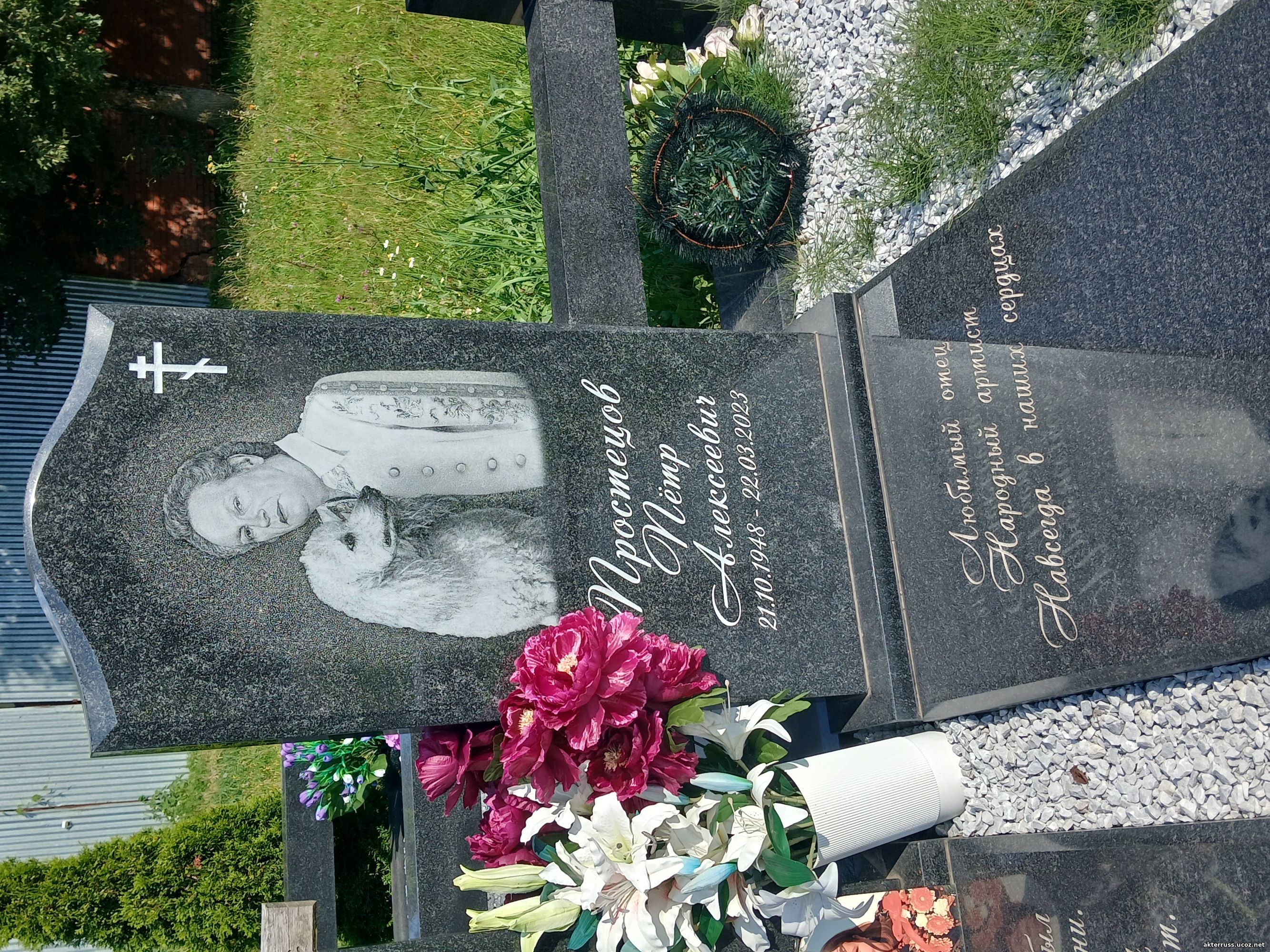 Похоронен на Перепечинском кладбище в Москве рядом с супругой (10 участок).